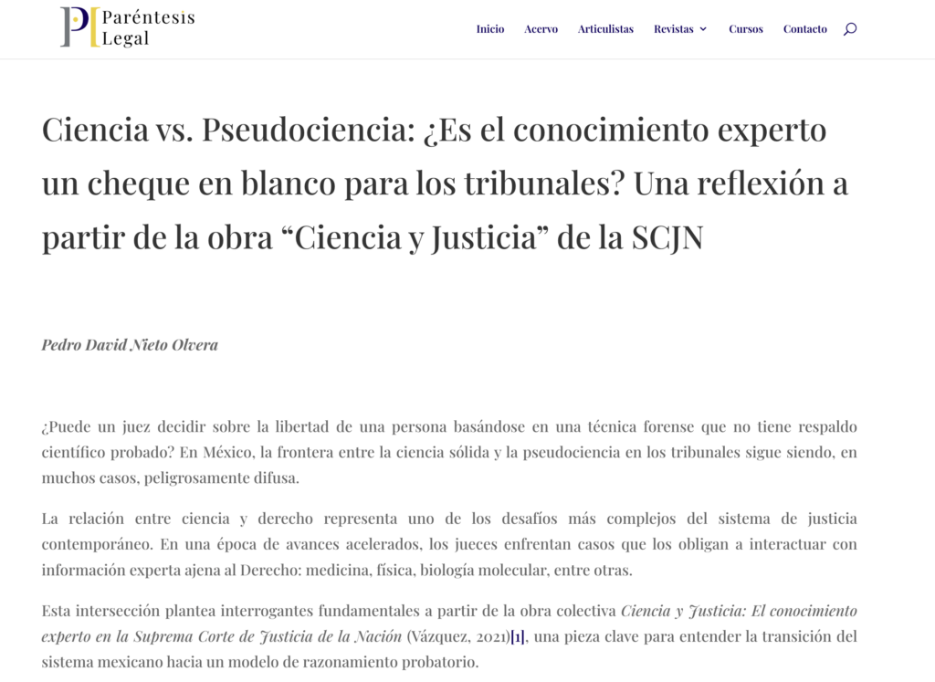 Ciencia vs. Pseudociencia: ¿Es el conocimiento experto un cheque en blanco para los tribunales? Una reflexión a partir de la obra “Ciencia y Justicia” de la SCJN